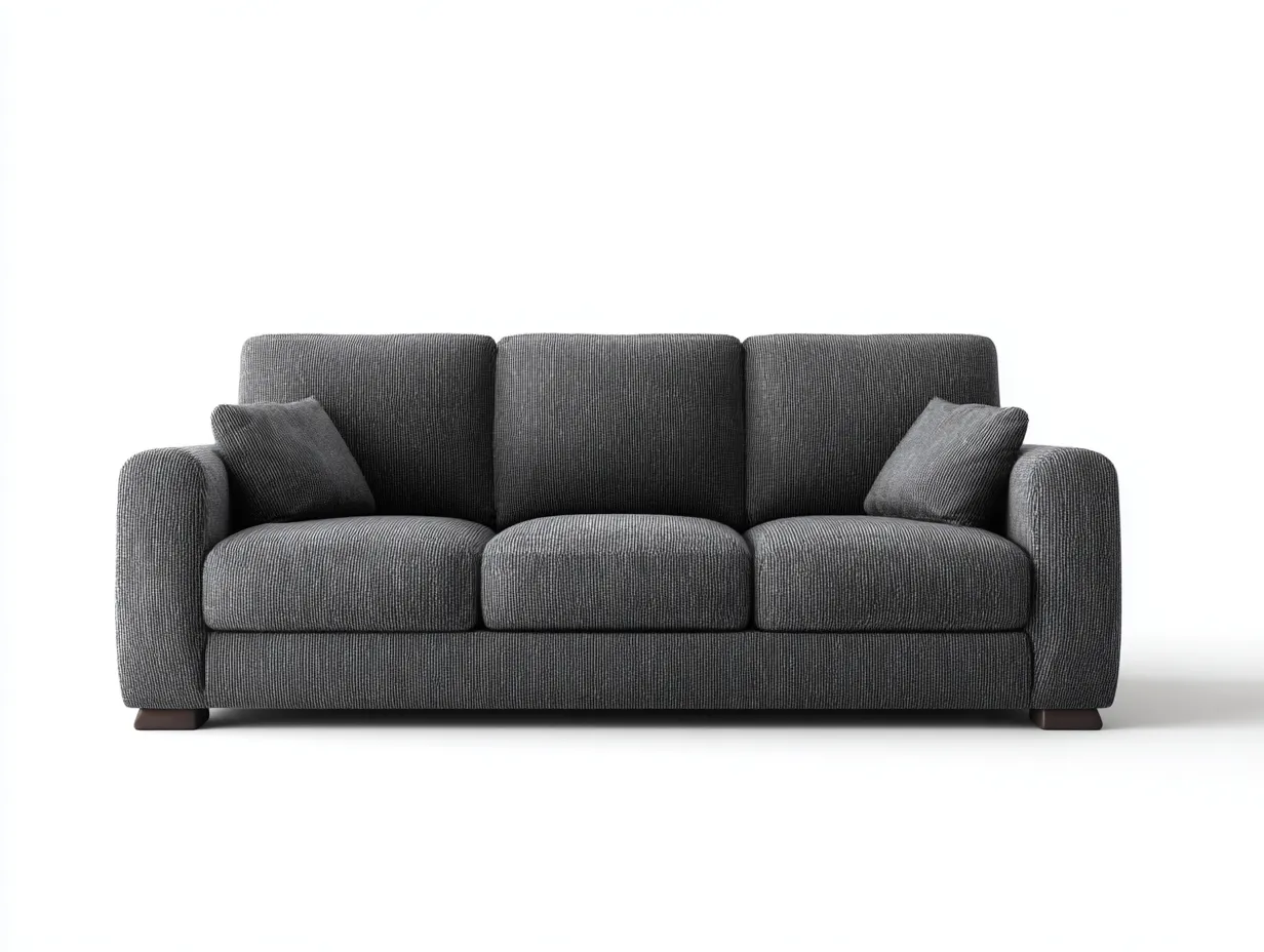 Der Bezug besteht aus Stoff in Dunkelgrau. Die Oberfläche ist gleichmäßig verarbeitet und für den täglichen Gebrauch ausgelegt. Die stabile Konstruktion sorgt für zuverlässige Unterstützung.